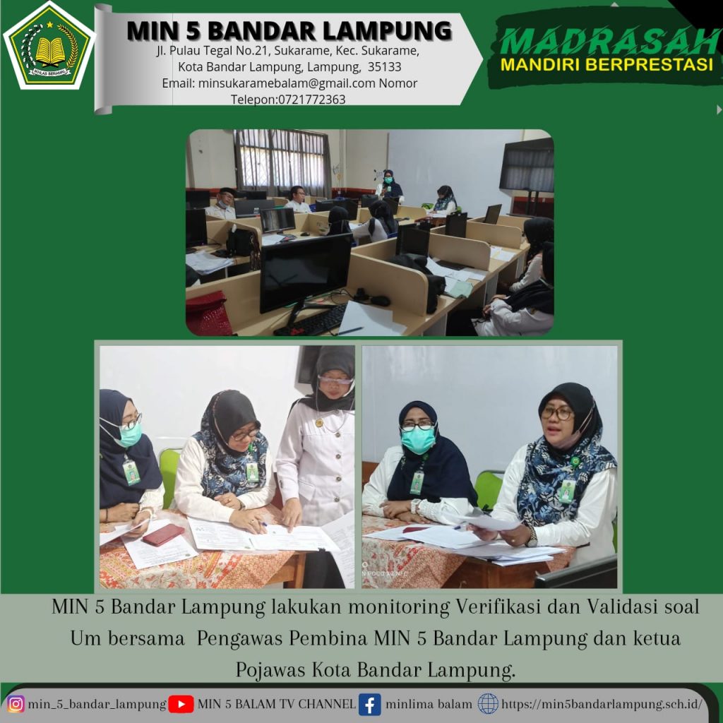 Bandar Lampung (Humas), Pengawas Pembina MIN 5 Bandar Lampung dan ketua Pokjawas Kota Bandar Lampung lakukan monitoring Verifikasi dan Validasi soal UM di MIN 5 Bandar Lampung, acara ini dilaksanakan diruang Lab Komputer pada hari senin 11 april 2022 pukul 13.00 WIB yang dihadiri langsung oleh guru- guru yang mengampu bidang study kelas 6 beserta […]